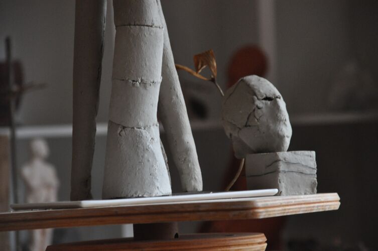 Schwestern, Ton gebrannt, Höhe 50 cm