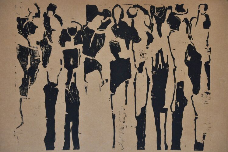 Reden auf Holz, Holzschnitt, 50x70 cm
