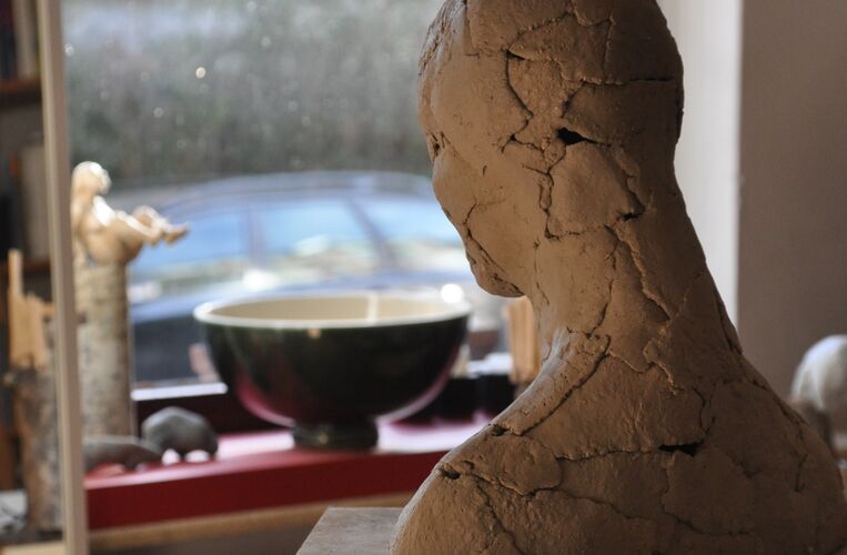 Halbfigur (Detail), gebrannter Ton, 27 cm